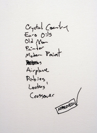 Set List Sampler: Destroyer (Daniel Bejar) 2006, embroidery on canvas, 25.5 x 21.5 inches
